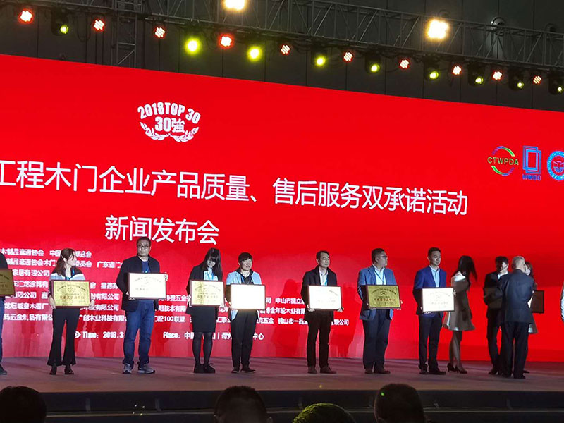 2018中國(guó)門窗品牌創(chuàng)新趨勢(shì)高峰論壇暨新聞發(fā)布會(huì)樹興木業(yè)有限公司榮獲2018全國(guó)市場(chǎng)工程木門企業(yè)產(chǎn)品質(zhì)量售后服務(wù)雙承諾活動(dòng)30強(qiáng)榮譽(yù)